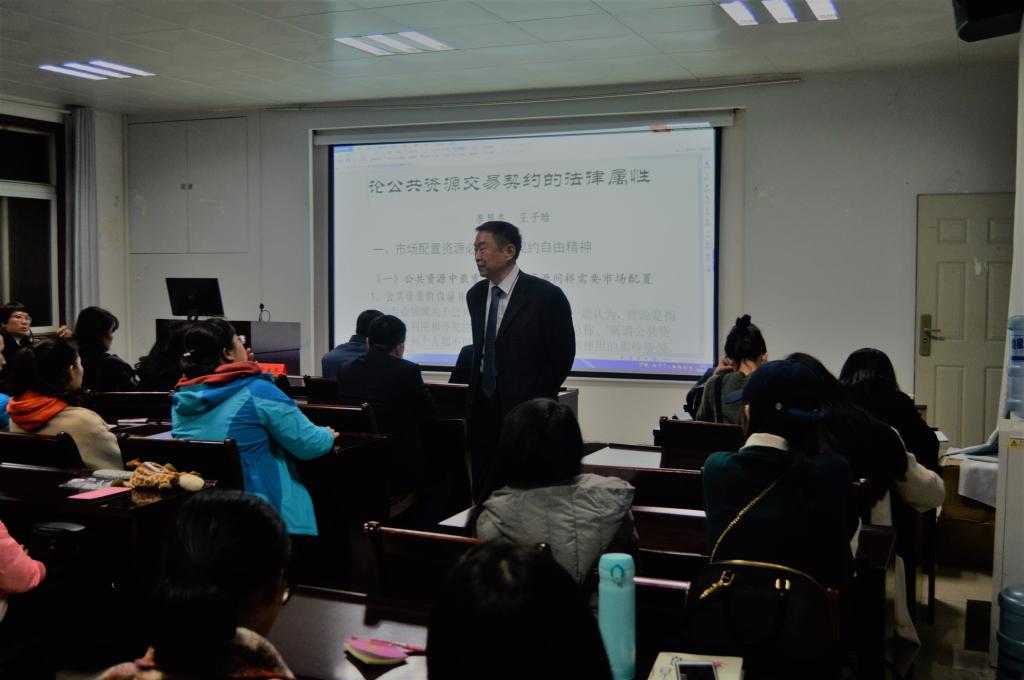 南望法治讲坛。在国土资源法律评价重点实验室101报告厅作了题为“公共资源交易契约的法律属性”的学术讲座。讲座由徐明教授主持,来自法学系及其它院系的诸位师生参加了此次讲座。
