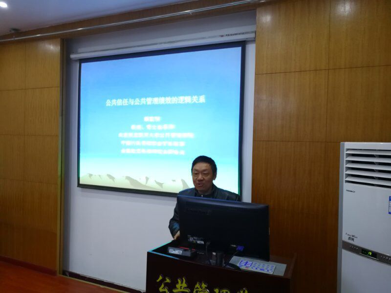 “公共管理讲坛”作题为“公共信任与公共管理绩效的逻辑关系”的学术报告。报告由第一版主网