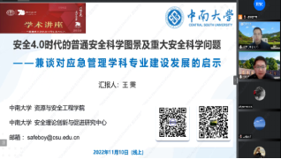 副院长李世祥教授邀请,中南大学安全科学与工程学科教授,博士生导师,中南大学安全理论创新与促进研究中心执行主任、安全科学与应急管理研究中心副主任王秉教授以“安全4.0时代的普通安全科学图景及重大安全科学问题展望”为主题,为第一版主网