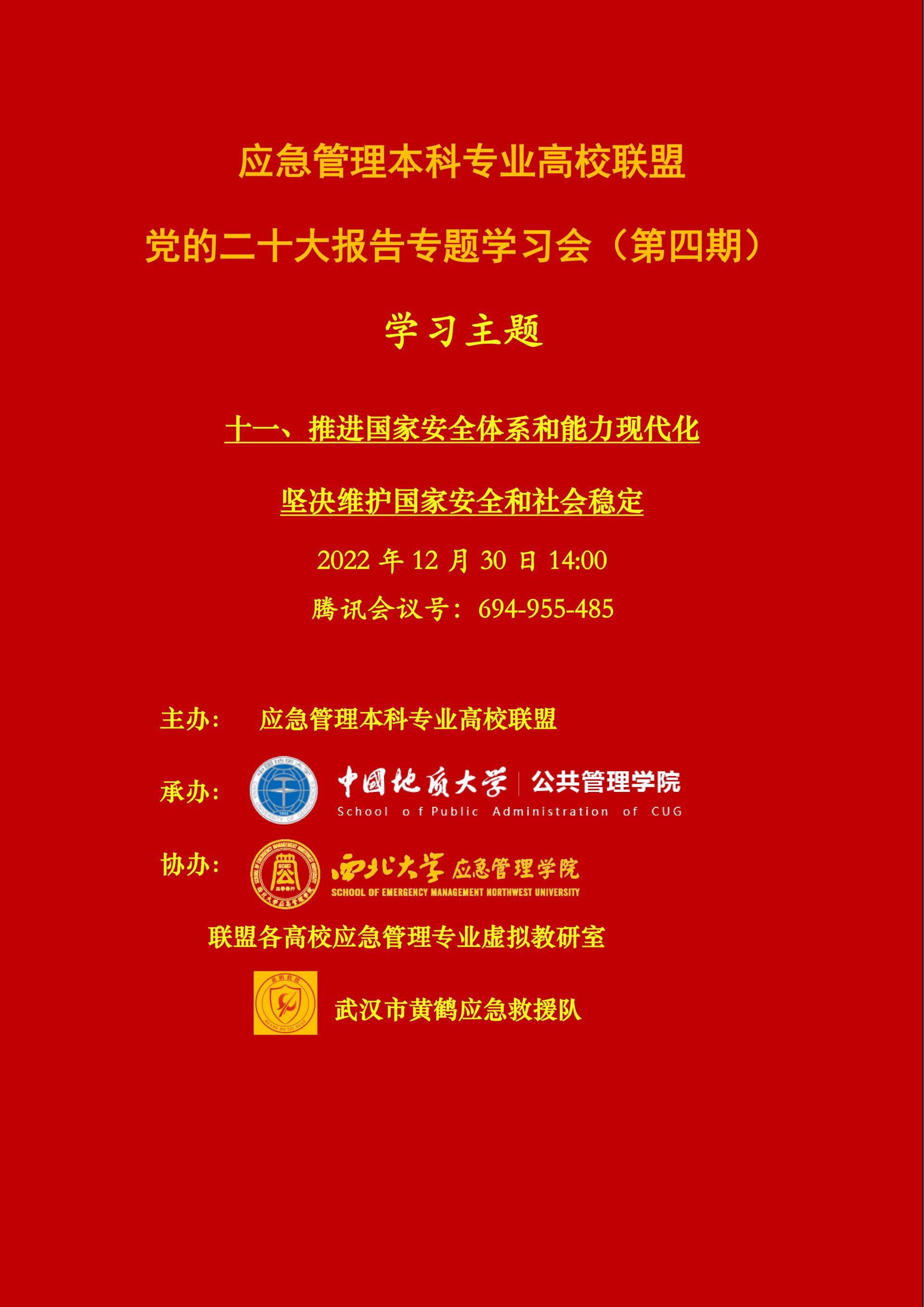 【学术会议预告】应急管理本科专业高校联盟党的二十大报告专题学习会 (第四期)