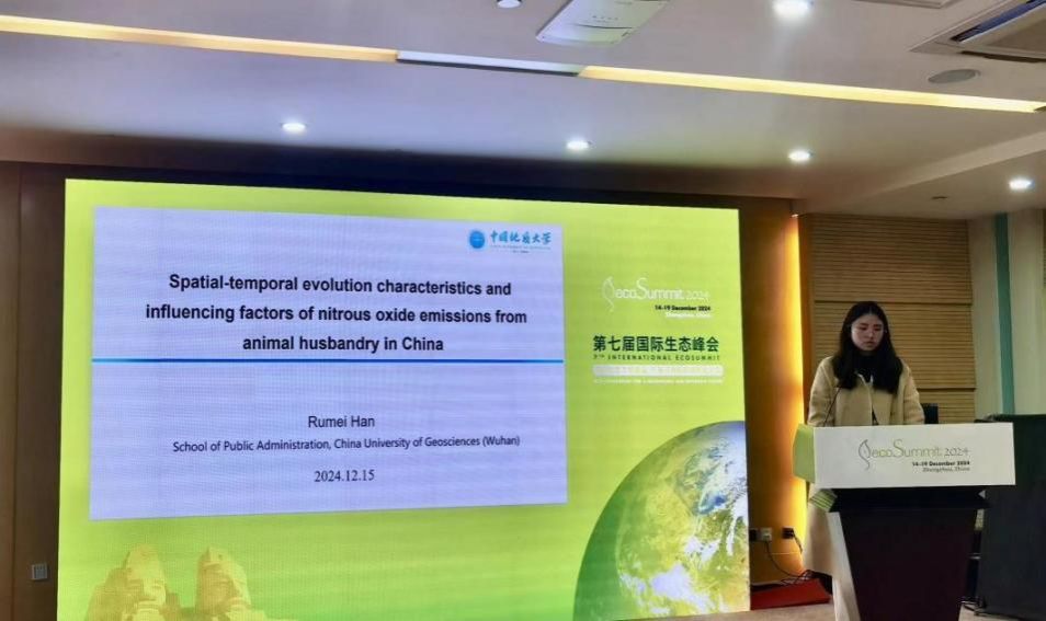 研究生韩茹梅作了题为“Spatial-temporal Evolution Characteristics and Influencing Factors of Nitrous Oxide Emissions from Animal Husbandry in China”的报告。