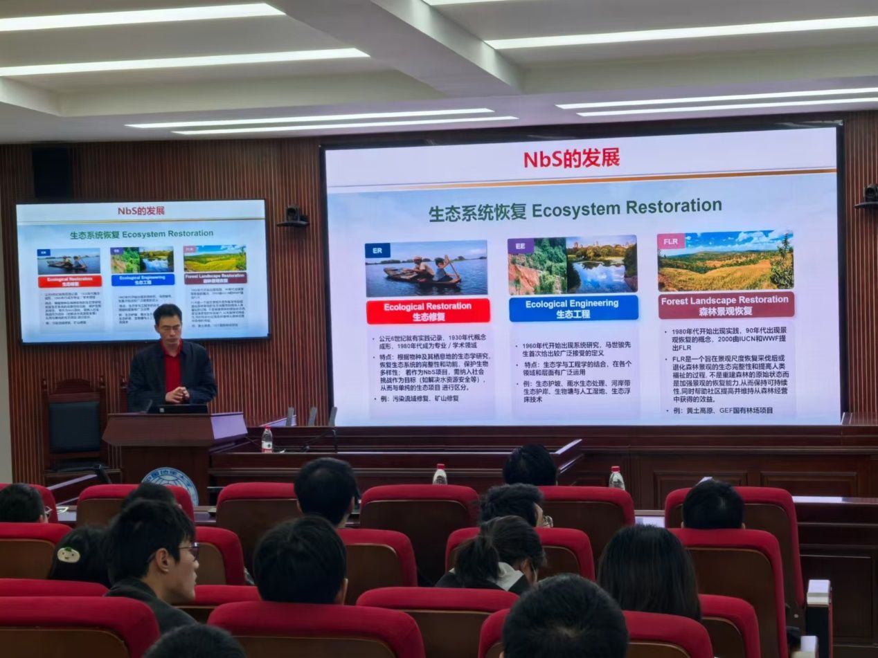 (北京)兼职教授,博士生导师,国务院政府特殊津贴专家,自然资源部“科技领军人才”和首席科学传播专家王军做客本期公管大讲堂,带来了主题为“基于自然解决方案(NbS)的前沿发展与实践应用”的学术讲座。讲座由龚健教授主持,校内百余名师生参与。