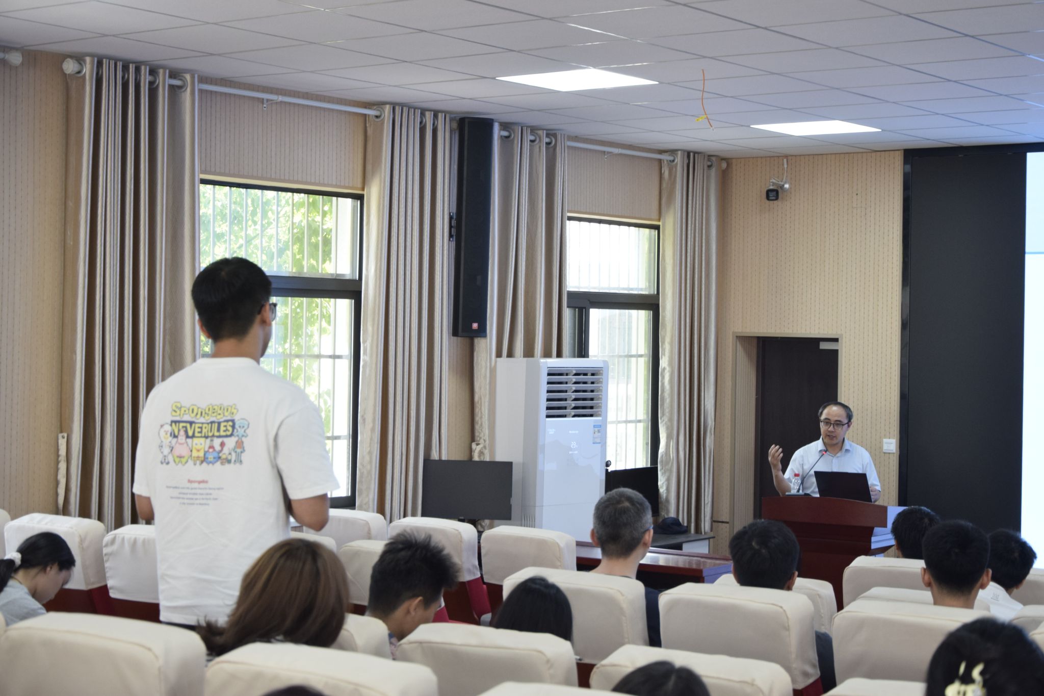 他指出,在全球变暖与中国碳中和碳达峰的背景下,交通系统的减碳工作十分重要。深度强化学习模型、博弈论等方法在交通系统的优化中扮演着重要的角色,基于此构建的车路协同系统(CVIS)能够显著降低交通系统的碳排放,减轻城市碳排放压力。在交流互动环节,师生们围绕“智慧城市交通系统中的深度学习应用”“如何理解智慧交通中的博弈”等问题展开热烈讨论。