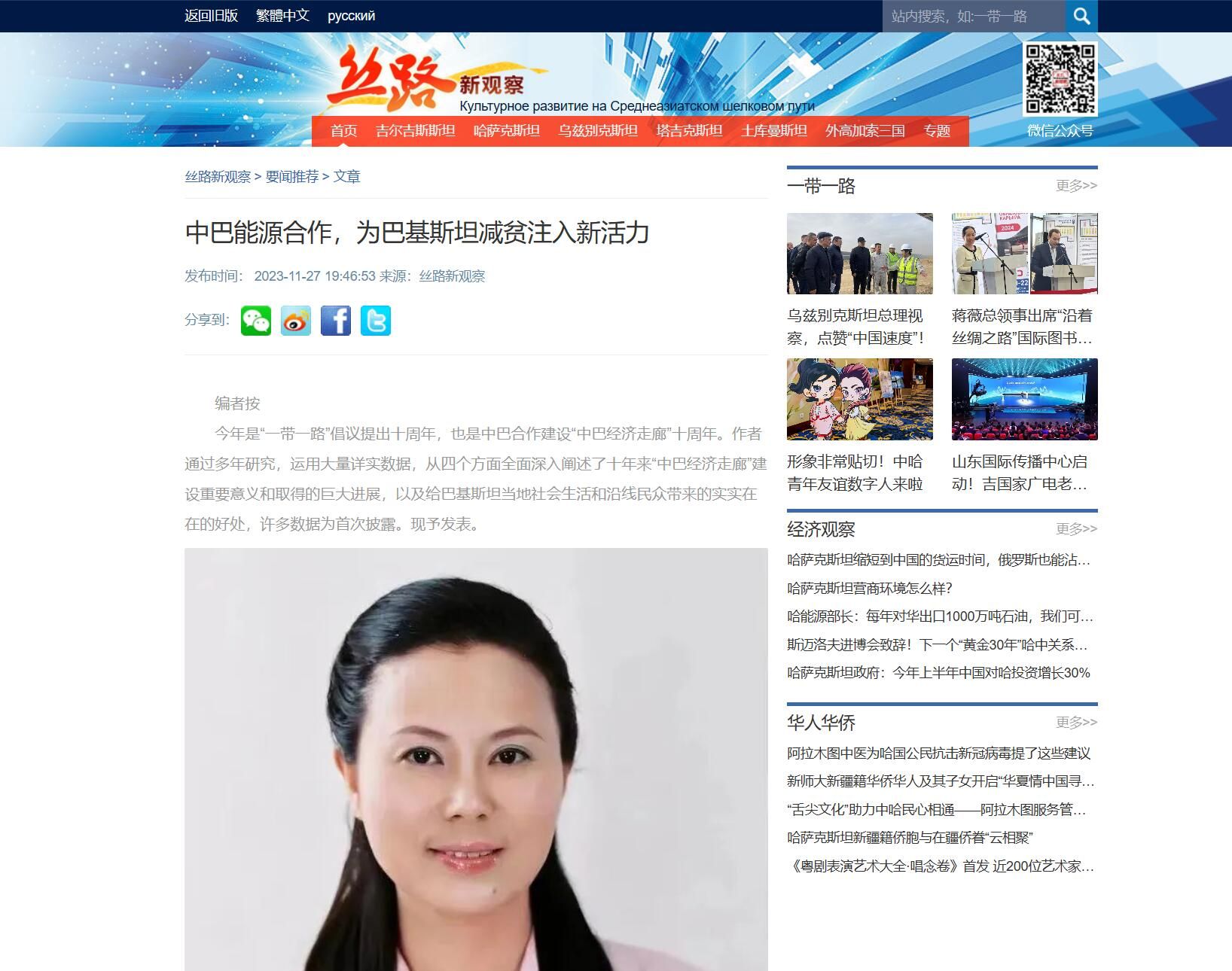 中巴经济走廊研究中心谢小青老师和学生文玉冰关于中巴能源合作的研究成果被丝路新观察刊载。