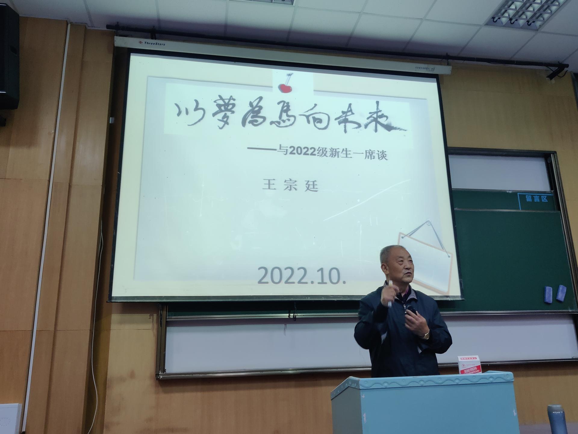 为进一步引导本科生新生明确生活定位、找准前进方向、树立奋进目标,2022年10月6日下午学院特邀请退休教师王宗廷教授为第一版主网