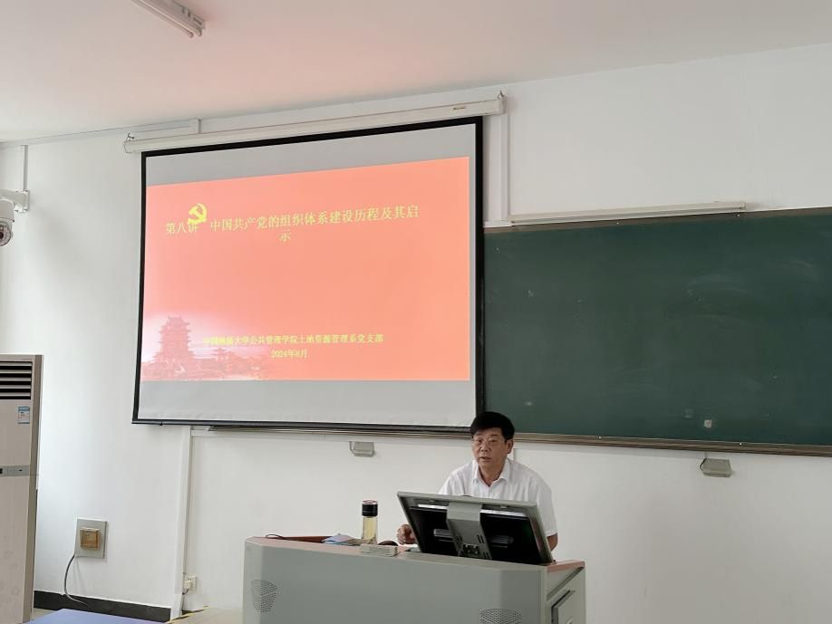 为深入学习贯彻党的二十届三中全会精神,加强对党的组织体系的认识,9月16日上午,土地资源管理系周学武老师为第一版主网 秭归在站实习师生讲《中国共产党的组织体系建设历程及其启示》主题党课。