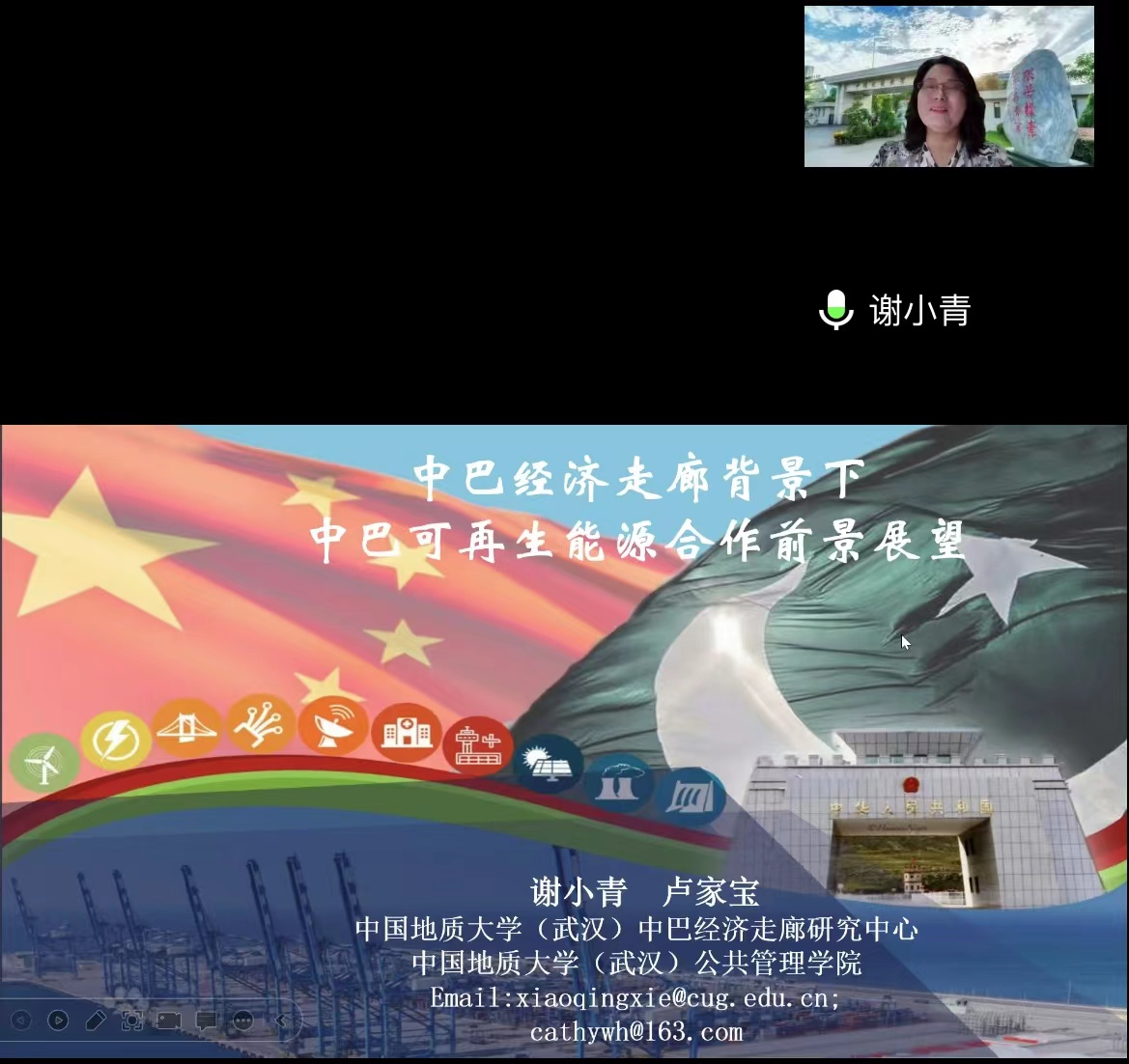 2023年6月18日,第一版主网 谢小青副教授与卢家宝同学参加2023慕峰论坛·中巴经济走廊国际学术研讨会,并做会议主题报告《中巴经济走廊背景下中巴可再生能源合作前景展望》。报告指出,目前中巴经济走廊建设为中巴可再生能源合作带来了巨大的机遇。巴基斯坦可再生能源丰富、发展前景良好,中巴可再生能源合作有助于为巴基斯坦电力可持续、可负担的供应提供渠道和力量。加速能源供给的多样化,是缓解巴基斯坦“电荒”的重要举措。可再生能源的使用不仅促进巴基斯坦缓解经济压力,同时也促进巴基斯坦国内减贫。