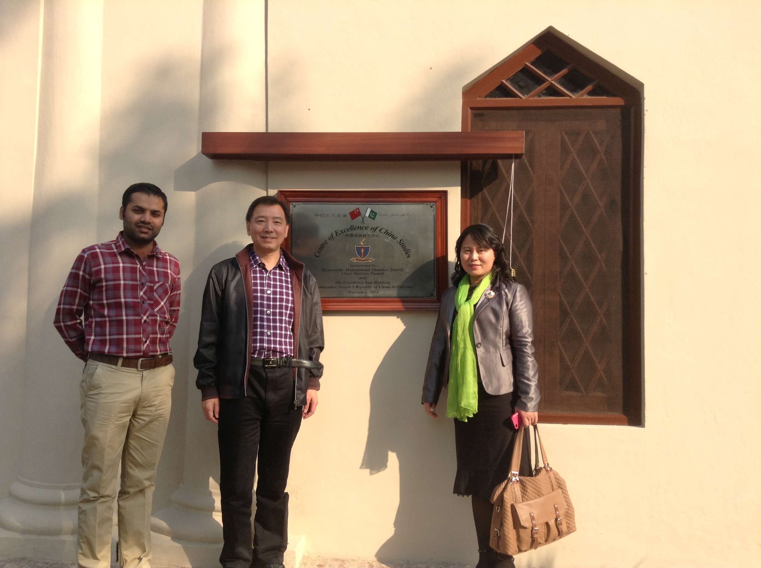 李江风教授、谢小青副教授应邀出席Government College University Lahore“中国卓越研究中心”揭牌仪式,出席这次揭牌仪式的有中国驻巴基斯坦大使馆文化参赞张英宝先生、Punjab省政府高官、GC University校长及有关教授、研究中心工作人员。该中心设在 GC University Lahore最古老的建筑中,整个研究中心用中国传统的大红剪纸、吉祥如意结、中国画装饰一新。
