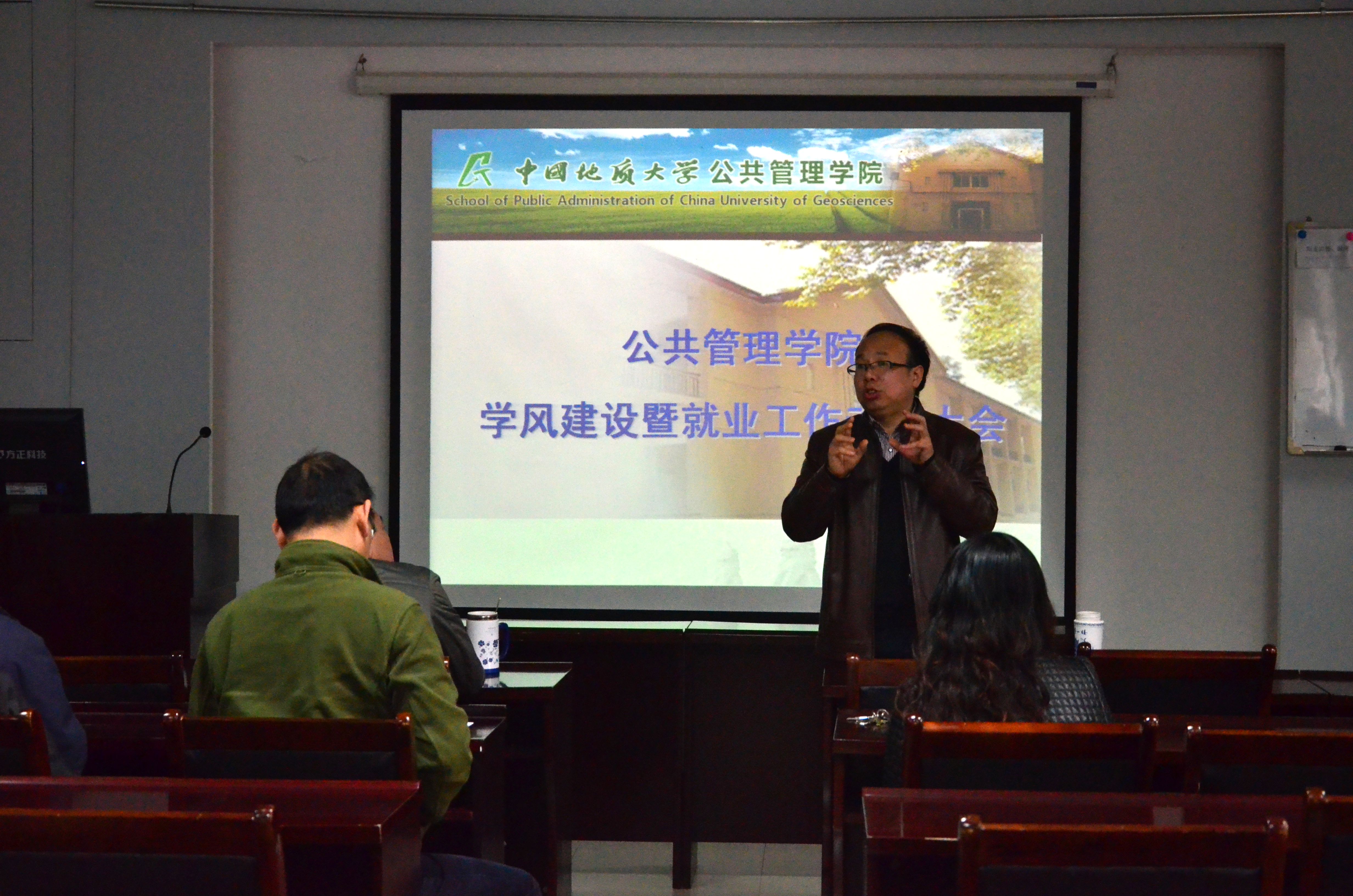 学风建设动员大会在国土法律评价实验室101顺利召开,参加此次会议的有学院党委书记张吉军、院长李江风,分管教学、科研、研究生工作的副院长,各系系主任及本科年级各班班主任、部分研究生导师、学工组全体老师。会议由党委副书记胡文勤老师主持。