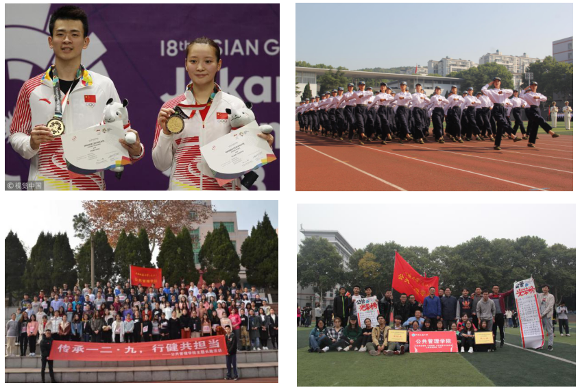 六、公管运动雄风:2018年,学院学子郑思维/黄雅琼(雅思组合)获得2018雅加达亚运会羽毛球混双冠军,学院多位学子在国内各级比赛中斩金夺银。2018级军训汇演荣获“标兵方阵”、“北城风云”六院篮球赛第一名、2018年秋季运动会女子团体第一名、男子团体第四名、啦啦操全校第一名、广播体操校级一等奖,“一二·九”校级冬季长跑女子团体第一名、男子团体第五名。学院女子篮球队获得“地大杯”团体第三名,学院乒乓球队荣获“地大杯”乒乓球比赛女子团体第二名、男子团体第七名,羽毛球队获得“羽众不同”杯校级羽毛球比赛高年级组女双冠军,高年级组混双冠军。