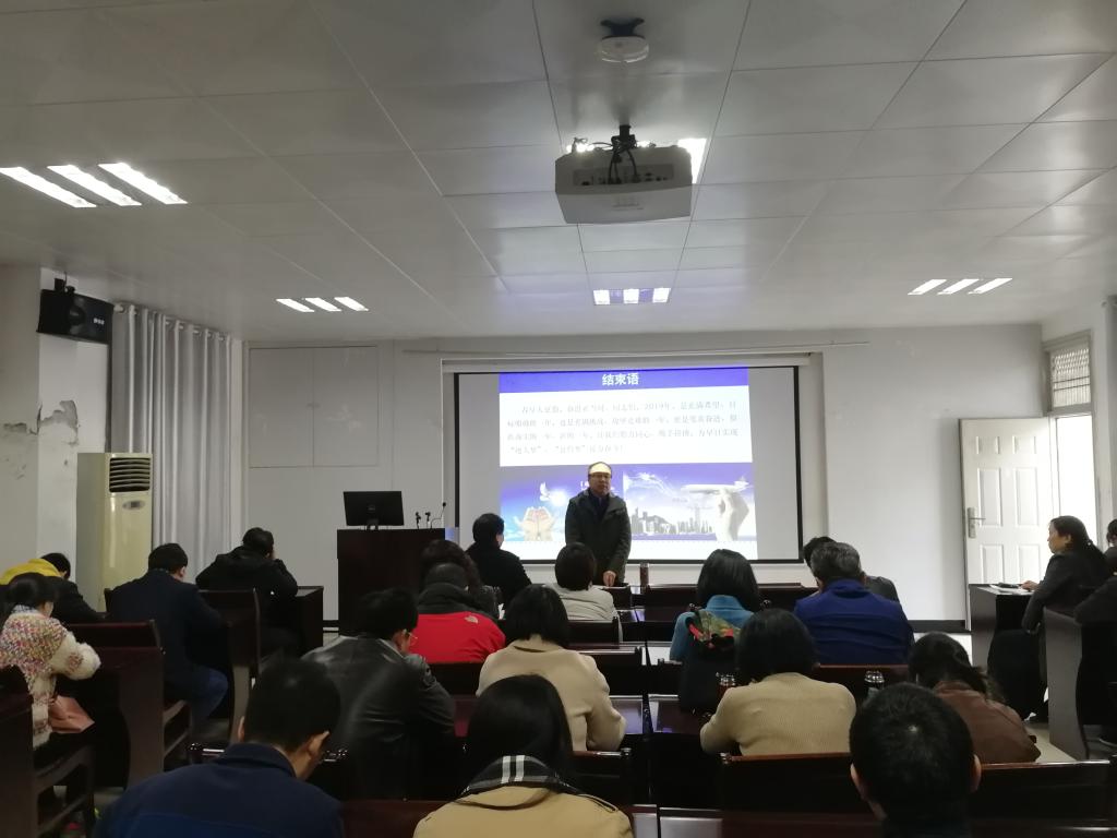 张吉军书记做总结讲话。张书记要求全院教职工严格落实学校和学院2019年各项工作要求,以昂扬的激情扎实做好2019年各项工作,为新中国成立70周年、学校迁汉办学45周年献礼。