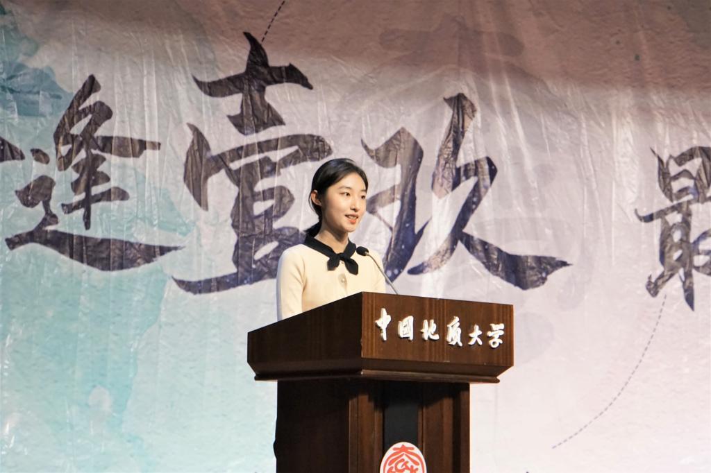 19级土地资源管理专业张莹同学作为硕士研究生代表以《励志勤学 追梦圆梦题发言,她督促新生牢记地大校训,脚踏实地仰望星空、刻苦磨炼把理想融入中华民族伟大复兴事业中,在奋斗中绽放青春光芒,用青春谱写无愧于时代、无愧于人生的难忘大学时光