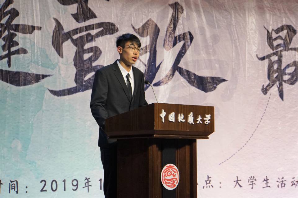 17G195班胡学湉同学作为19级本科新生代表以《于坚守中力争上游》为题发言代表全体新生向老师、学长学姐的帮助表示感谢,激励同学们努力学习、提高综合素养,以严格的要求砥砺前行,在不忘初心中践行人生理想。