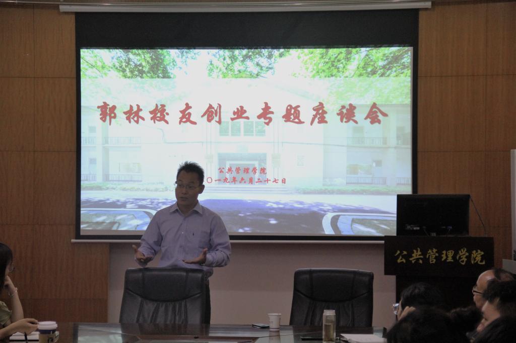 2009届公共事业管理专业校友郭林创新创业专题座谈分享会在公管楼B209召开。学院党委书记张吉军、团委副书记(主持工作)李姝慧、团委副书记吴波及学院团学骨干、青年学子代表参加本次分享。会议由党委书记张吉军主持。