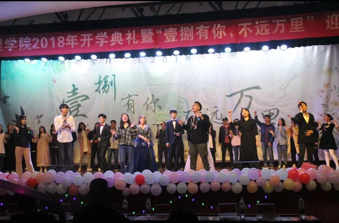2018年开学典礼暨“壹捌有你,不远万里”迎新晚会在大学生活动中心二楼演播厅举行。学院党委书记张吉军、院长王占岐、副院长才惠莲、党委副书记刘国华,新生班级班主任彭红霞、叶菁、宋小青及学工组全体老师、各学院嘉宾、2018级全体新生参加开学典礼暨迎新晚会。