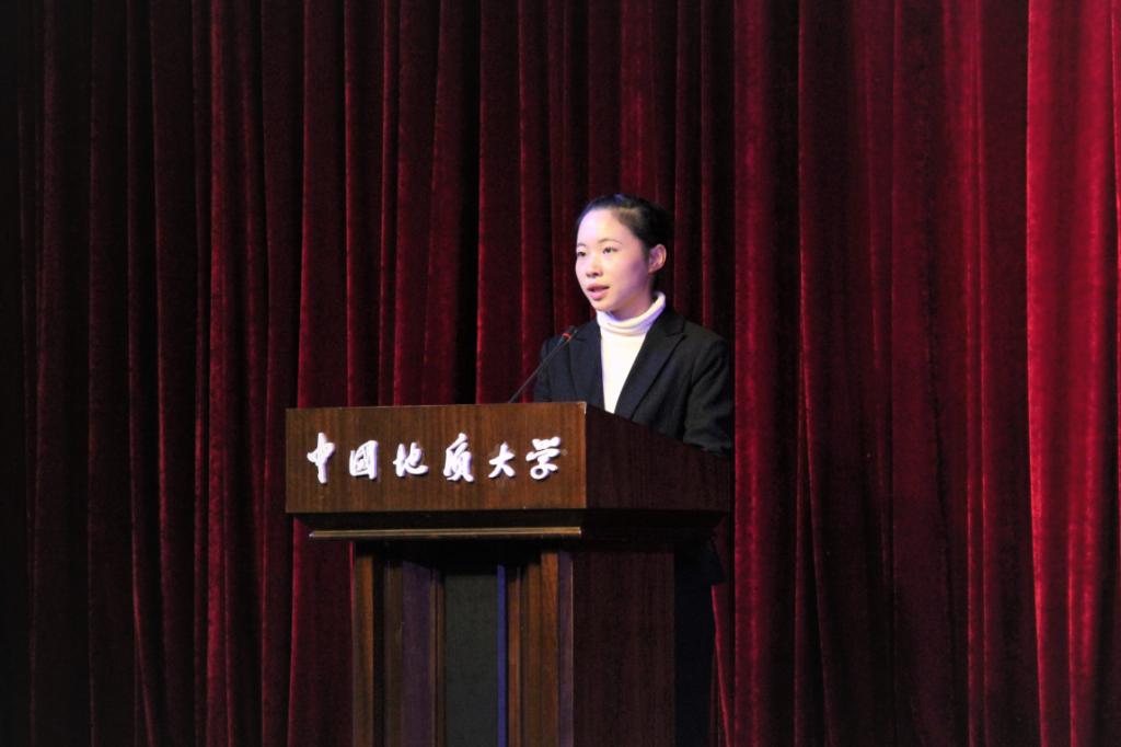 2018级新生代表、自然地理与资源环境专业174181班郑舒同学发言。她代表全体新生郑重承诺定会珍惜青春韶华,积极拼搏奋斗,实现自身的立德立学,成为一名具有创造品质和创新精神的公管人。