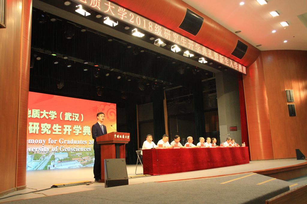 【编者按】9月8日上午,2018级研究生开学典礼在弘毅堂举行。中国科学院院士殷鸿福,校领导何光彩、王焰新、成金华、唐辉明、赖旭龙、王华、刘杰,党委常委、组织部部长储祖旺,各研究生培养单位、相关职能部门负责人及2018级研究生新同学参加典礼。副校长赖旭龙主持典礼。学校新闻链接://www.dybzweb.com/info/10506/90265.htm