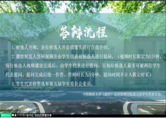 紧接着,五位候选人分别从个人介绍、竞选原因、岗位认知、工作计划和未来展望等方面展开答辩。各候选人在答辩中展现了个人竞选优势和对未来学生会的展望与期冀,让与会代表们充分感受到了他们对学生会工作的热情与决心。同时与会代表们也向候选人们提出了许多有针对性的问题,为第一版主网