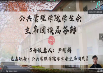 随后,会议进入第四阶段:选举产生第五届学生委员会委员。在狄致远同学介绍完答辩流程后,朱嘉敏、索云龙、刘明竞雪、宋文恬、尹明辉五位主席团候选人依次进行了亮相。