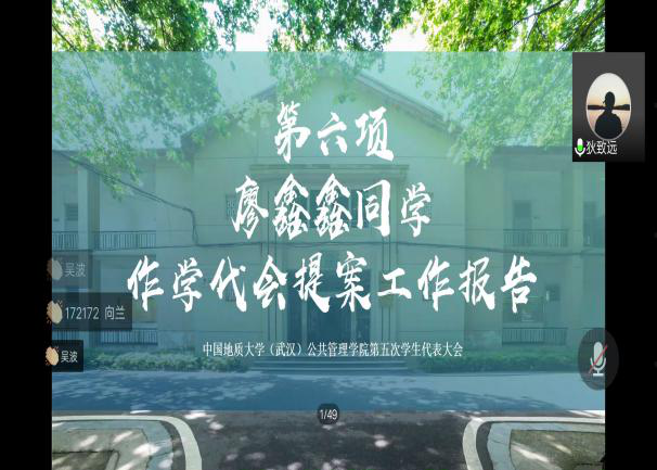 随后2019届学生会副主席廖鑫鑫同学作第五次学生代表大会提案工作报告。