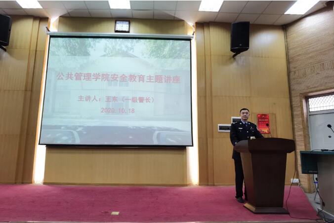 在本次安全教育主题讲座中,王东警长幽默风趣的演讲引得全场笑声不断,大家在乐趣中收获颇深。相信在王东警长的指导下,公管学子对防骗对策能有更加深刻的认识与理解并铭记于心,为顺利度过大学生活奠定更加坚实的安全基础。