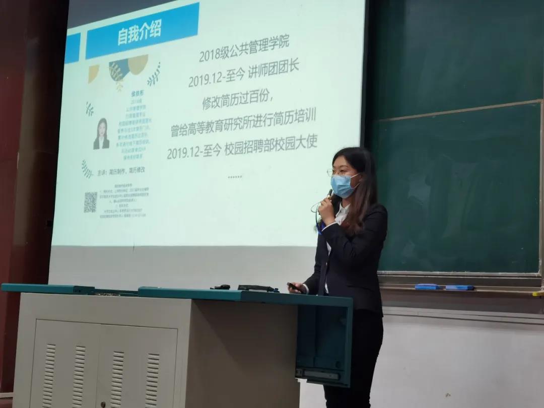“简历就是自己的名片,是求职的敲门砖”,校园招聘部讲师团团长候依彤同学这样强调简历的重要性,在简历培训方面经验丰富的她准备了满满的干货。她结合实际案例分享了与职位需求呈现高匹配的简历的“秘密”,即一份优秀的简历要体现简明性、真实性、针对性、匹配性、严谨性,给同学们介绍了一些简明易懂的简历制作和投递技巧,并针对毕业生求职中碰到的常见面试形式给出了对应的建议和指导。