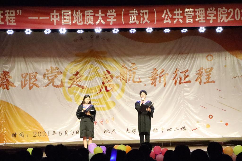 6月9日晚,学院2021届毕业晚会于西区大学生活动中心二楼演播厅顺利举行。学院2021届全体毕业生参加晚会,学院党委书记张吉军、副院长龚健、副书记刘国华、法学系宦吉娥、公共行政系刘中兰、175172班主任周学武、土地资源管理系朱江洪、公共行政系黄德林、171171班主任吕凌燕、172172班主任马向平、院团委副书记(主持工作)李姝慧、毕业年级辅导员吴波、王青涛、辅导员王欣雨、李文伟、周佳仪出席晚会。狄致远、云龙、李琳、雷鹤鸣四名同学主持晚会。