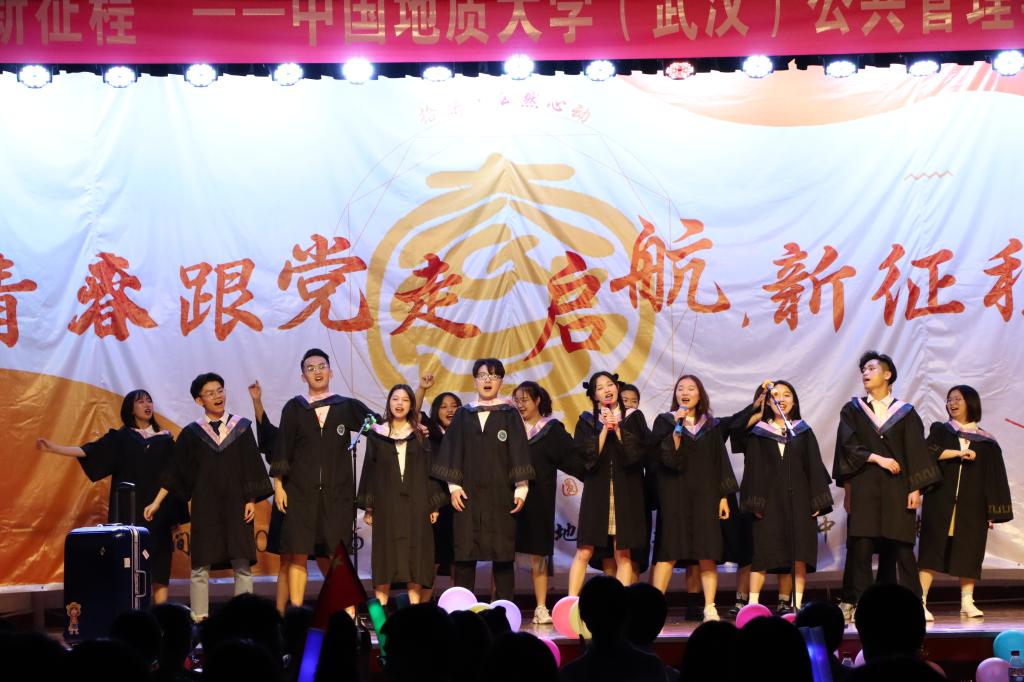 晚会最后,全体参会嘉宾及毕业生合唱校歌《勘探队员之歌》,歌声激昂慷慨,饱含着对母校深深眷念和感恩。