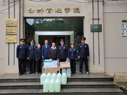 活动最后,江岸区城管执法大队向学院捐赠了口罩、酒精、消毒液等疫情防控物资。学院党委书记张吉军表示,城管执法大队工作人员为武汉市拥有良好的城市风貌付出了辛勤的劳动,作为市民,我们都深表感谢。张书记强调,大学生既要读万卷书,又要行万里路,本次学院和执法大队联合开展党史学习活动是一次非常好的开始,后续公管学院的同学须更多地走出去,了解国情民情社情,将所学更好地转化为所用,为更好成为一名符合新时代发展需要的当代青年贡献自己的力量。