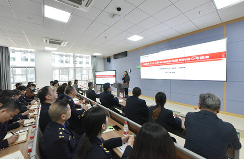 活动第三项,由马克思主义学院高翔莲老师教授以《从新民主主义革命光辉历程看党的初心与使命》为题讲授专题党课。高教授向与会的所有成员重申了党史学习的重要性,她指出认真学习“四史”可以帮助我们在学习领悟中坚定理想信念、在奋发有为中践行初心,所有党员、团员都要自觉做到学史明理、学史增信、学史崇德、学史力行。高教授带领大家回顾了中国共产党领导中国人民和中华民族“站起来”的光辉历程,从1921年一大的召开到1949年新中国的成立,从宏观的革命历程到微观的历史人物,从历史事件陈述到历史启示总结,高教授铿锵有力的语言和充满激情的讲授引人入胜。通过学习,大家深感红色政权来之不易、新中国来之不易、中国特色社会主义来不易,更对现在繁荣富强的国家感到自豪。
