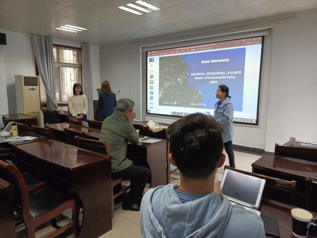 公共行政系在公管新楼举办环境政策硕士项目招生宣讲。学院党委副书记刘国华、工会主席曾伟教授、公共行政系党支部书记刘中兰副教授以及众多学生参与。该宣讲由昆山杜克大学汪舒怡博士和卢云飞项目招生官主讲。