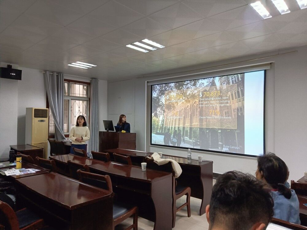 宣讲嘉宾为我们详细介绍了昆山杜克大学的学校优势、申请流程、就业去向、奖金体系等各方面相关信息。本次项目招生主要针对环境与经济、环境与健康、环境与保护、环境与政策等方面的研究,致力于为中国乃至世界的环境保护与改善做出贡献。