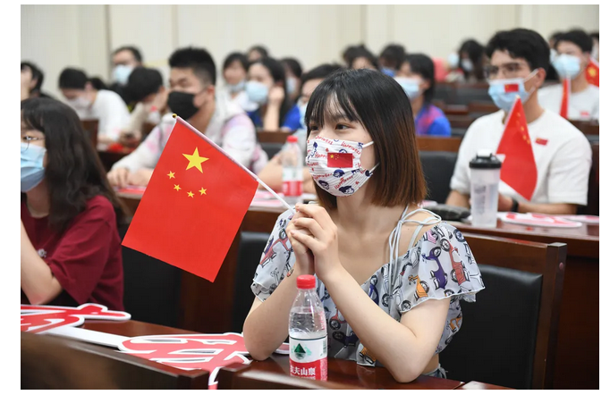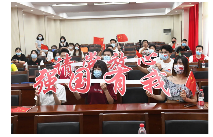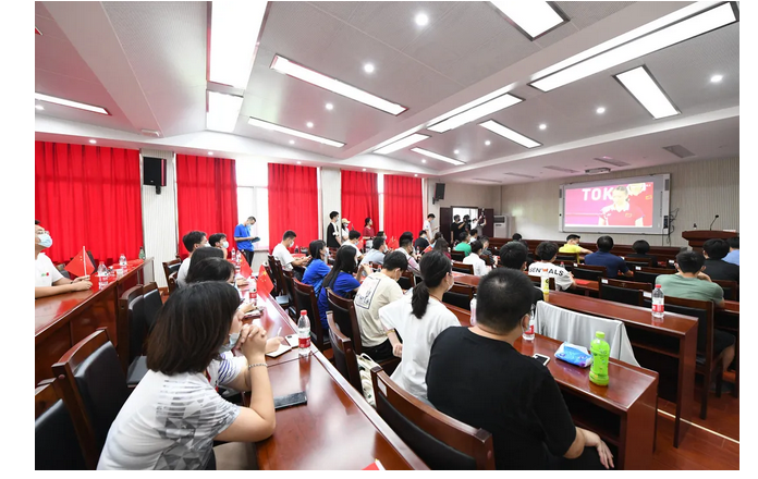 在南望山校区西区体育馆3楼多功能报告厅组织师生集中收看比赛。(摄影 张玉贤)