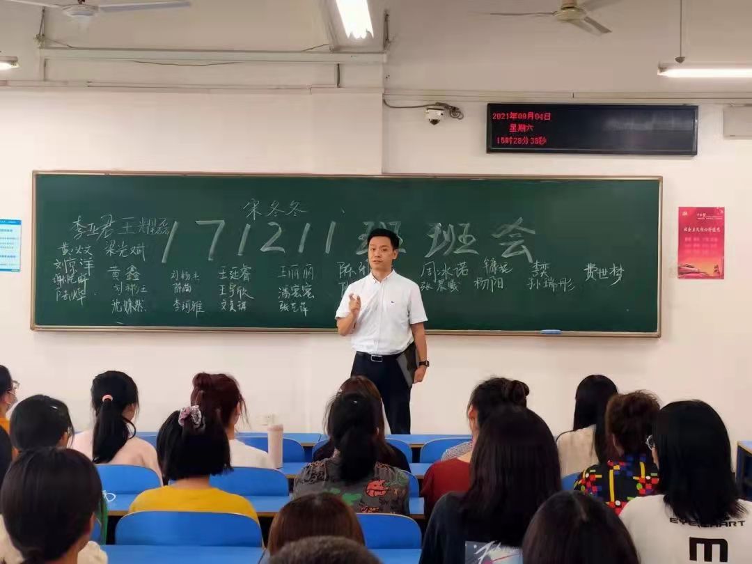 2021级本科新生入学教育在教三楼207教室举行。学院党委副书记刘国华、团委副书记(主持工作)暨2021级本科生辅导员李姝慧、辅导员王欣雨参加活动。活动由刘国华副书记主持。