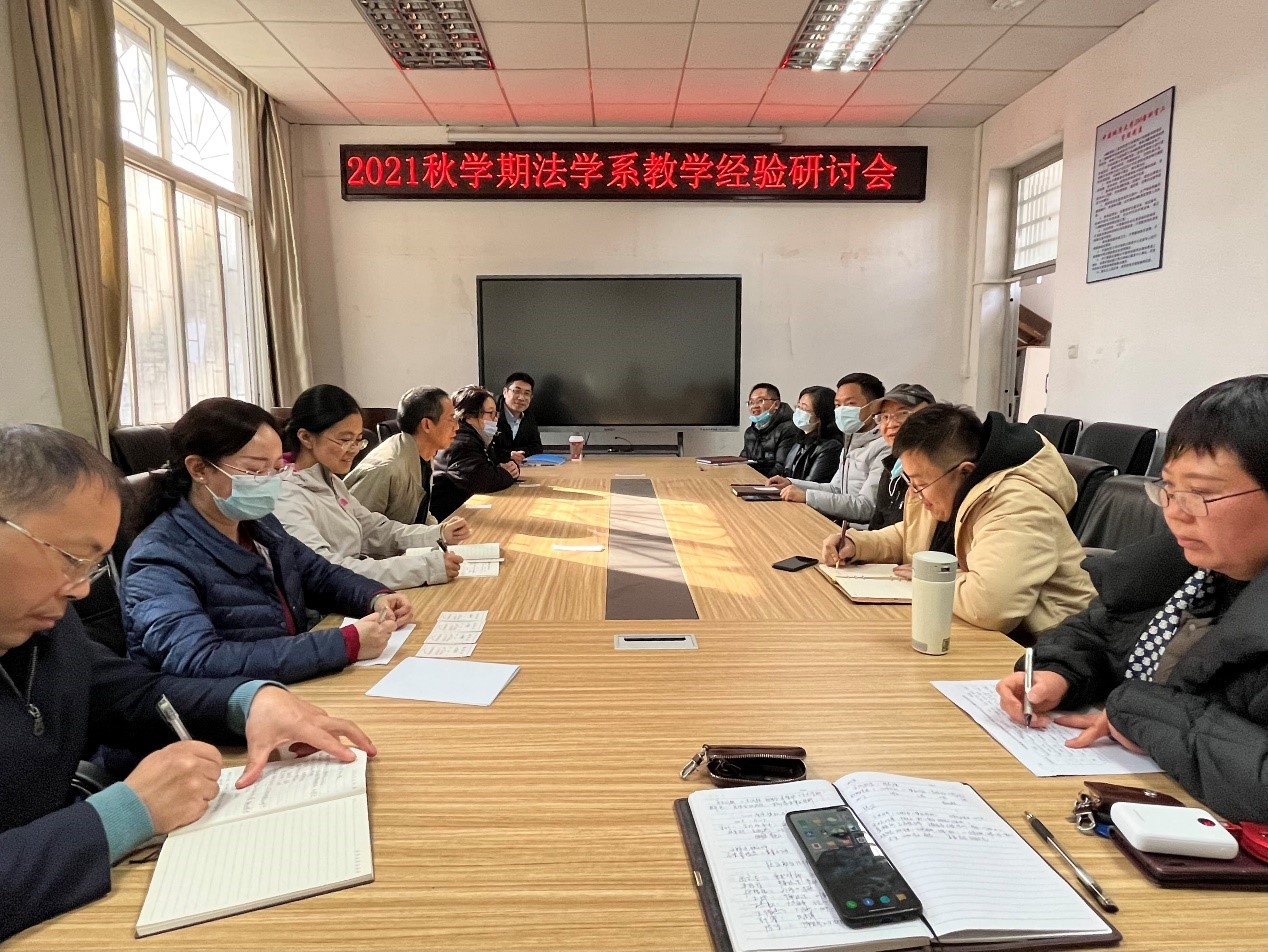 20211125日下午两点,法学系全体教师齐聚公管楼B107,围绕态度”“方法“投入”三个关键词,召开了2021年秋学期的教学经验研讨会。