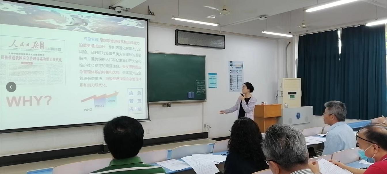 评委组组长曾克峰教授主持本次教学竞赛的评审。本次共有3名青年教师参加竞赛,土地资源管理系童陆亿老师以“风险控制与危机管理”为题、公共行政系苏黎兰老师以“公共危机与应急管理”为题、法学系张旭鹏老师以“中国梦复兴梦——解读‘复兴’” 为题参赛。