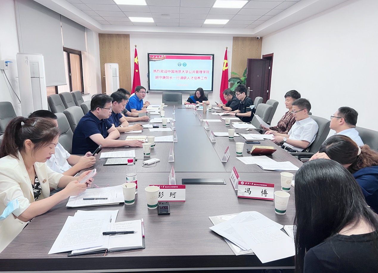 党委书记梁涛和副院长刘伟对胡守庚院长一行到学院调研表示热烈欢迎,副院长刘伟就学院人才培养体系进行了详细介绍,他指出学院通过优化调整培养方案,达到高质量培养人才的目标。双方就人才培养、教学质量评价、研究生管理等工作进行了深入细致地探讨和交流。