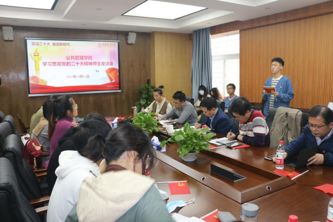 副院长王忠:习近平总书记的报告,高屋建瓴,既是对过去十年中国共产党带领全国人民艰苦奋斗、攻坚克难、取得中国特色社会主义建设阶段性胜利不平凡历程和经验的回顾,也是开启新时代全面建设社会主义现代化国家、全面推进中华民族伟大复兴新征程的宣言书。报告中的主题词之一是“共同体”,人类命运共同体、民族共同体、社会治理共同体等战略构想,反映了中国共产党治国理政的新理念新思想和新战略,是马克思主义中国化时代化的新飞跃。围绕党的二十大报告,结合学院工作,我们也要打造事业共同体,坚持以学生为本,坚持守正创新,思考行政管理、应急管理、土地资源管理、法学等专业如何社会治理共同体,推进教学与科研高质量发展,加强三全育人,为中国特色社会主义事业培养合格接班人。