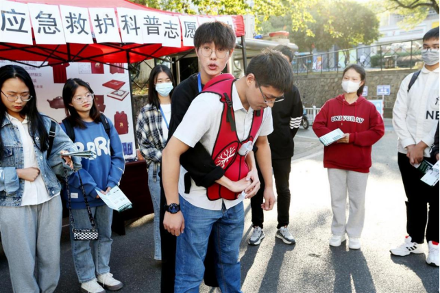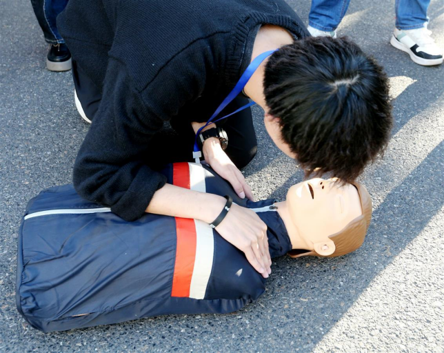学生在示范科普应急救护技能。面对常态化疫情防控,该校第一版主网