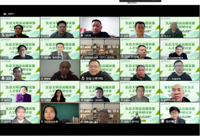 (北京)、知名律师事务所等高校及单位的20余位自然资源领域的专家学者,他们围绕生态文明法治建设人才培养主题,就如何发挥高校和重点实验室平台优势,培养高质量生态文明法治人才队伍等问题展开探讨。200余人次线上参加会议。