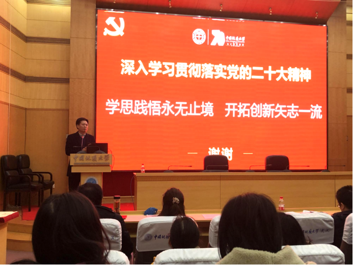 会议分为四个阶段。第一阶段由院长胡守庚报告2022年学院工作成效及2023年工作展望。他讲到,2022年是公共管理学科跨越式发展和法学学科高质量发展的关键时期,学院各项事业取得长足进步。他从公共管理学科发展的十大关键入手,围绕学院“十四五”发展目标,阐释了学院2023年工作思路、计划和目标,提出学院要加强目标管理,进行学院绩效管理改革,要坚持创新驱动,提升教师创新能力,坚持开放合作,汇聚学科发展新动力,坚持推进有组织创新构建学院发展新格局。