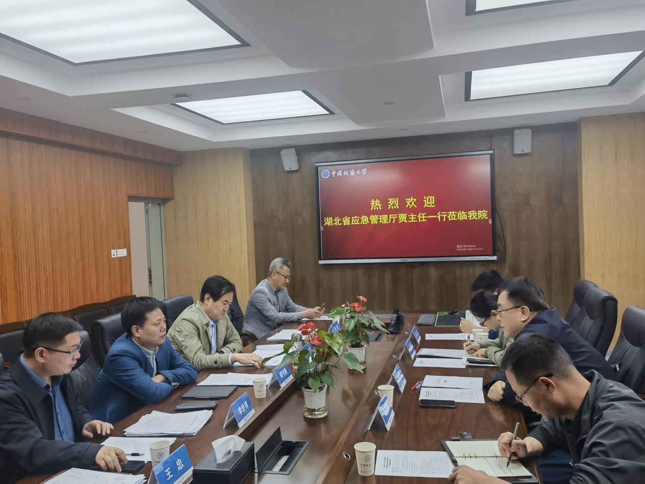 胡守庚院长致欢迎辞,代表学院对贾新军主任一行表示热烈的欢迎。他介绍了学院的基本情况以及应急管理专业建设取得的进展,希望双方发挥各自领域优势,加快推进资源共享,创新合作模式,促进共同发展。贾新军主任介绍了自然灾害应急技术中心的基本情况,期待双方以此次合作框架协议的签订为契机,全力推动各项合作落地落实,携手实现合作共赢。