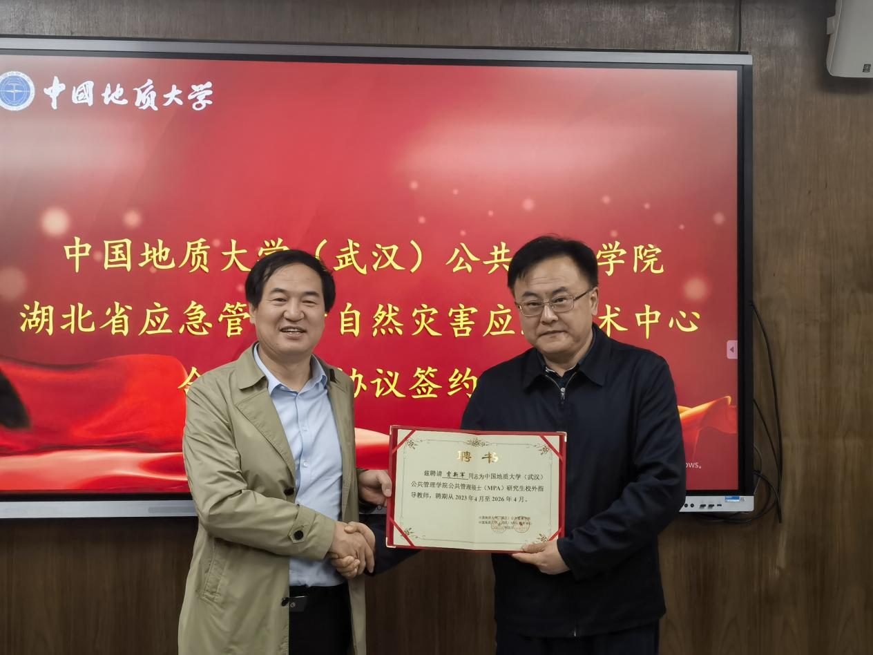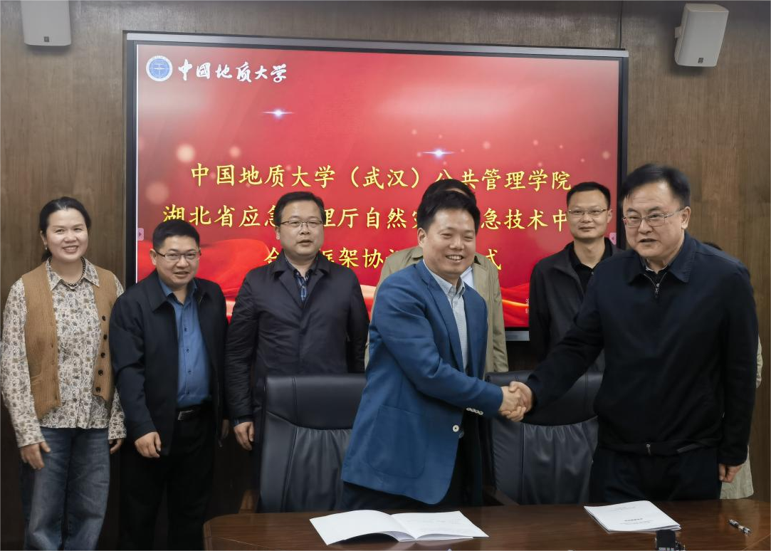 签约仪式上,胡守庚院长与贾新军主任代表双方签署合作框架协议,双方将在科学研究、人才培养、党建共建等方面开展广泛合作。该框架协议对于具体落实湖北省应急管理厅与第一版主网