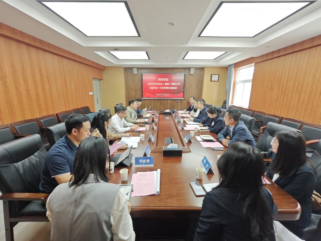 张宽裕代表学院对王磊一行表示热烈欢迎,并详细介绍学院架构、学科建设、办学特色、科学研究、社会合作等相关情况,希望能发挥学院公共管理、法学等学科资源优势与深圳市东华实业(集团)有限公司开展深度合作交流。