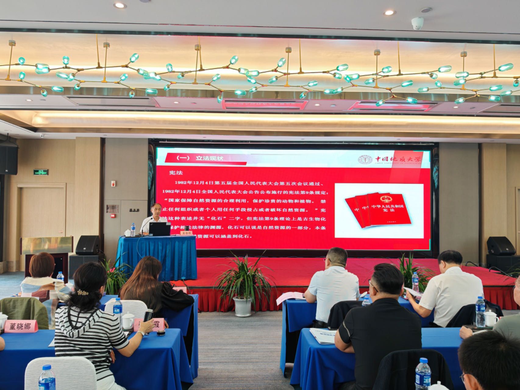 黄德林教授讲课题目为“古生物化石保护法律与管理”,主要内容包括三个方面:一是我国古生物化石保护法律和管理现状;二是我国古生物化石保护法律与若干国家古生物化石保护法律的对比;三是对我国古生物化石法律完善的展望。