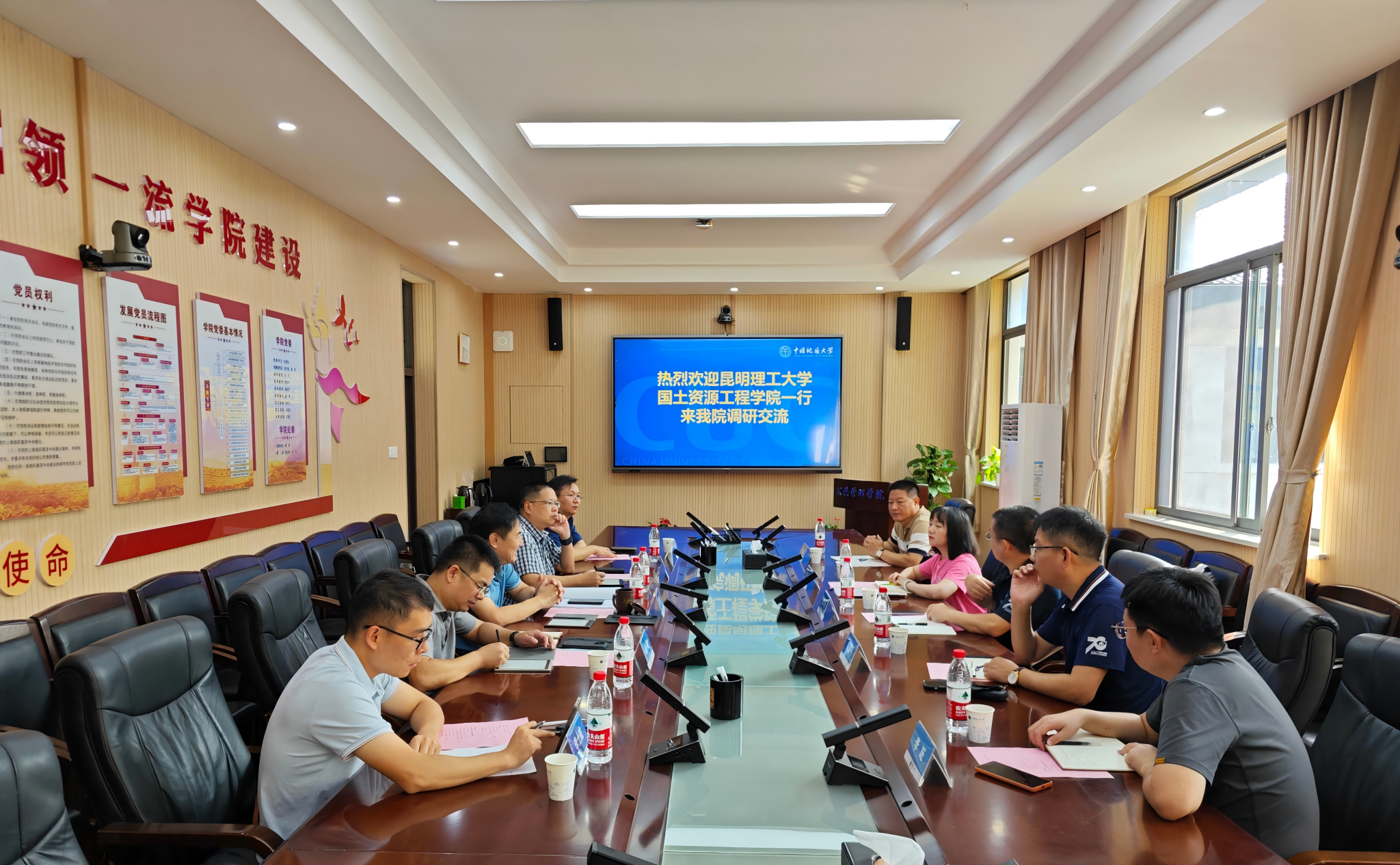 朱大明介绍昆明理工大学国土资源工程学院基本情况及土地资源管理专业办学情况,希望学习土地资源专业建设及办学经验,并以本次来访为契机,开展双方合作。国土信息与测绘工程系主任陈国平介绍土地资源管理专业建设发展情况。