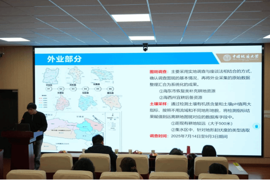 李曼博士系统总结了青海省主体功能区实施成效评估的成果;黄丽萍博士围绕青海省耕地保护考核奖惩基金项目展开汇报;毕宇哲博士聚焦“国土空间用途管制监测评估”的内涵与技术路径进行分享;邱宇莹博士以生态系统服务价值为切入点,揭示了生态系统服务与农户生计韧性的关联机制;硕士生周明洋、赵砚秋、王雅婧、赵康亭分别对“国土空间用途管制”、“手机信令大数据技术”、“乡村可持续发展”、“片区土地价值影响机制”等主题展开交流。