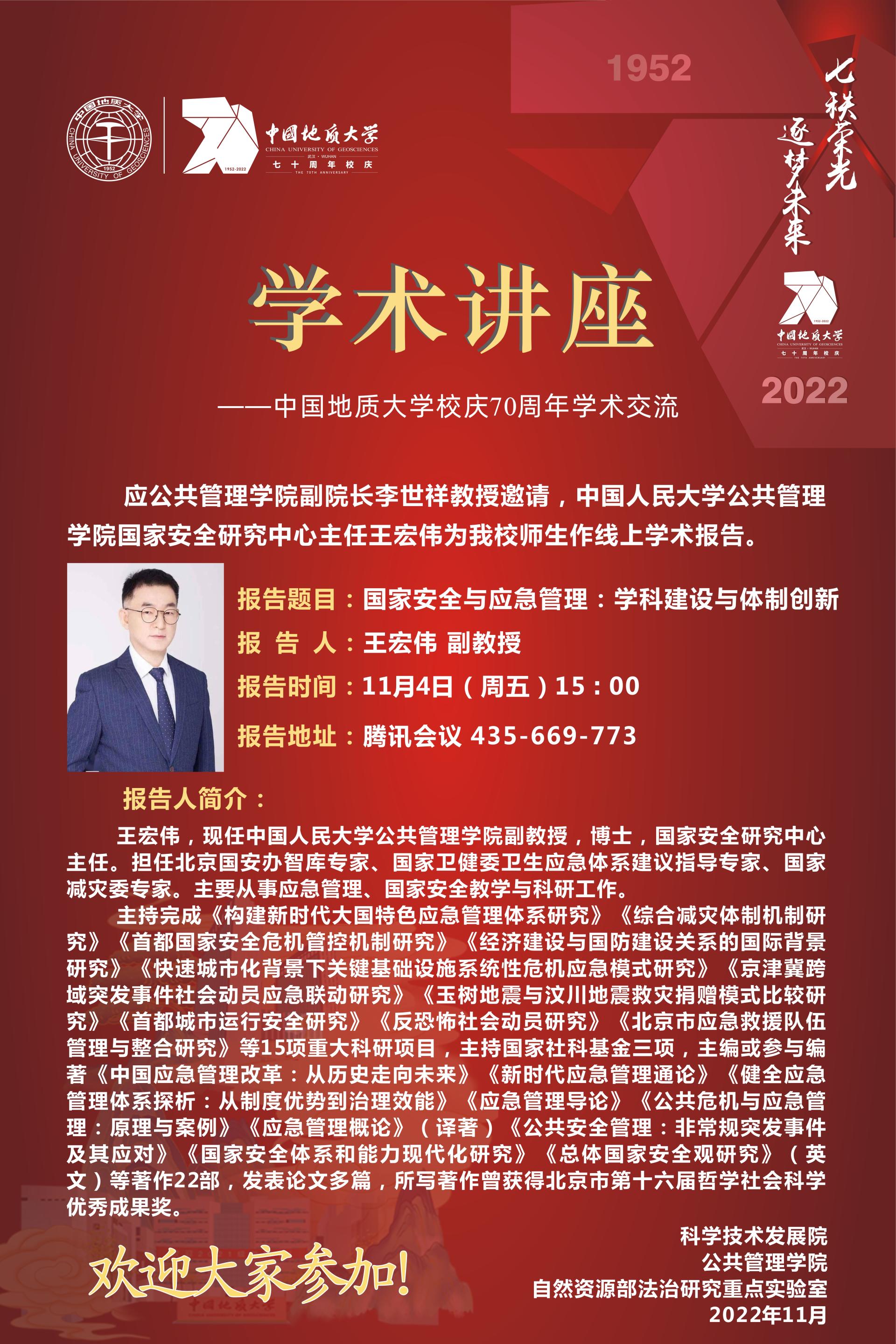 【讲座预告】国家安全与应急管理:学科建设与体制创新(2022年11月4日)
