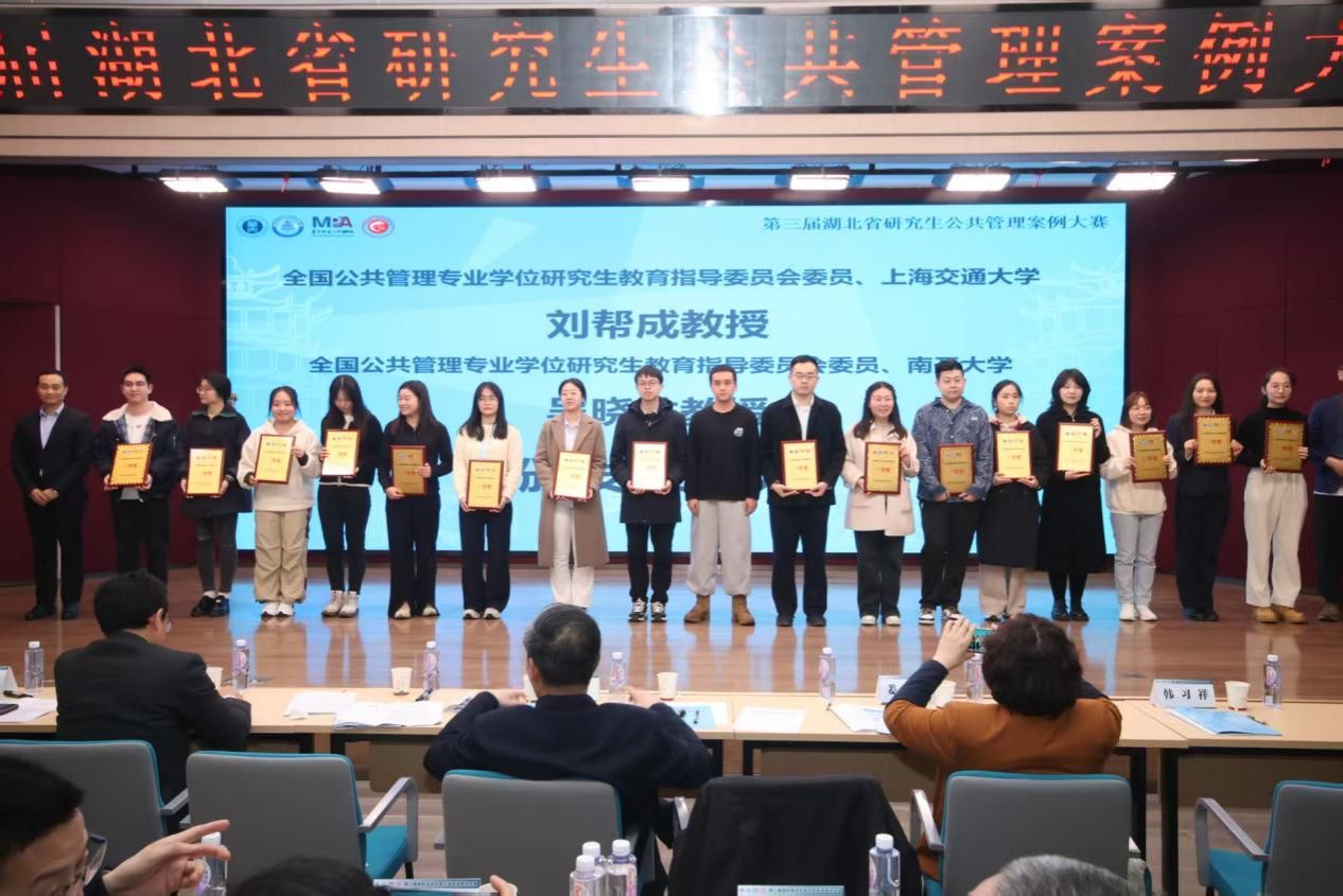 在第三届湖北省研究生公共管理案例大赛中,第一版主网 学子表现优异。由刘中兰副教授指导,MPA研究生黄超、李嘉豪、张韫雯、简雯菲、徐良钰组成的“我觉得你说的狠队”凭借案例《共同缔造引领基层社会治理——以沙洋县三峡土家族村为例》荣获三等奖。团队提交的案例聚焦基层社会治理创新这一重要议题,深入实地开展调研,通过详实的数据和深入的分析,系统探讨了基层治理实践路径。案例报告结构严谨、论证充分,提出的对策建议具有现实指导意义,获得评审专家的一致认可。同时,第一版主网 在本届赛事中共提交16份有效案例,荣获由湖北省公共管理专业学位研究生教育指导委员会颁发的最佳组织奖。